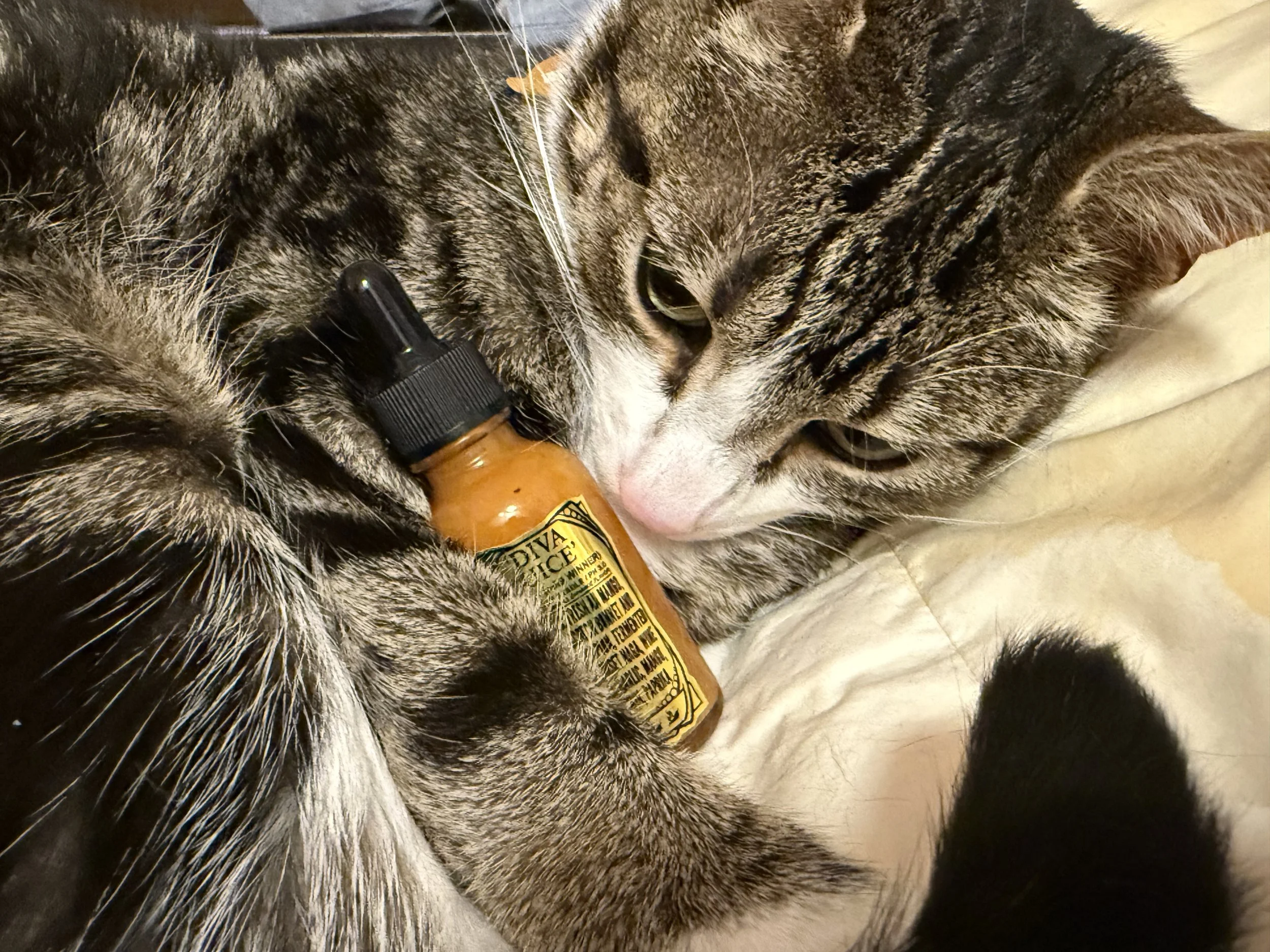 Created for the 1st Annual Hot-Sauce Contest night on 11/15/24, by a team consisting of Eli Russell guiding some other Divas-in-training. One of the two co-winners of the night. But while the other sauce won for its exotic attributes, Diva Juice won for being the most delicious hot sauce produced that night.